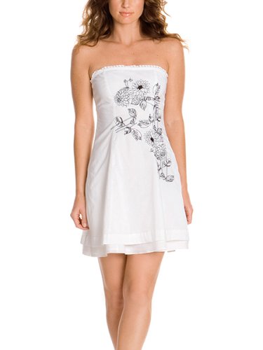 A summertime dress of sweet and sexy. Tube dress. Floral screen print. Floral-like ruching on top. Layered hem. Cotton Hand wash Domestic and/or imported Women > Dresses.