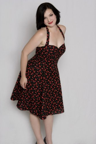 This Retro Style Swing Halter Dress in a fun Cherry Print. Rockabilly Pin Up Girls have always loved the retro Cherry designs. Here is Heartbreaker Fashions Black Cherry dress to fill the bill. The cut and design of this dress makes it comfortable, sexy and figure flattering on all body types. This bombshell Cherry Swing Dress zips up the back. It also has a tie in the back to adjust the fit and ties around the neck in true Halter Dress style. Heartbreaker Fashions are made in the USA and we ship them worldwide. We carry this Pin Up Girl Retro Black Cherry dress in an expanded range of sizes including Plus Sizes. 100 Percent Cotton.