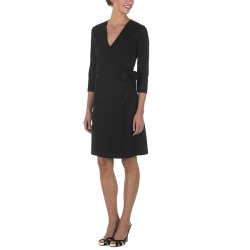 Get a perfect fit with this fabulous side-tie dress. Elegant crossover V-neck is flattering on any figure. Comfort is Key with this Wrap Dress. 3/4-Sleeve, V-Neck. Classic Pleated Front, Button Closure, Side Tie Closure. Made of 100% Polyester; Machine Wash Cold, Tumble Dry Low.